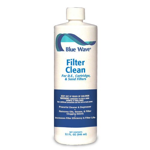 BLUE WAVE FILTER CLEAN, POOL FILTER CLEANER, FOUR 1 QT BOTTLE - NY205-4br /br / Swimming Pool Filter Cleanerbr /br / GREAT CLEANER FOR CARTRIDGE, D.E. AND SAND FILTERSbr /br / This powerful cleaner and de-greaser removes the oils, grease, and debris that clog your filter - in just one hour! No waiting overnight like with other less powerful pool filter cleaners. Regular use of Blue Wave Filter Clean will increase your filter efficiency and greatly extend the life of your filter.br /br / Use approximately 1 quart per cleaning your sand filter, or less, depending on sand filter size. As a filter cartridge cleaner or a DE filter grid cleaner, add 1 qt of filter cleaner to a large bucket or trash can and allow grids or cartridges to soak for a few hours. Also an effective filter cartridge cleaner when sprayed on with a spray bottle. Read more...